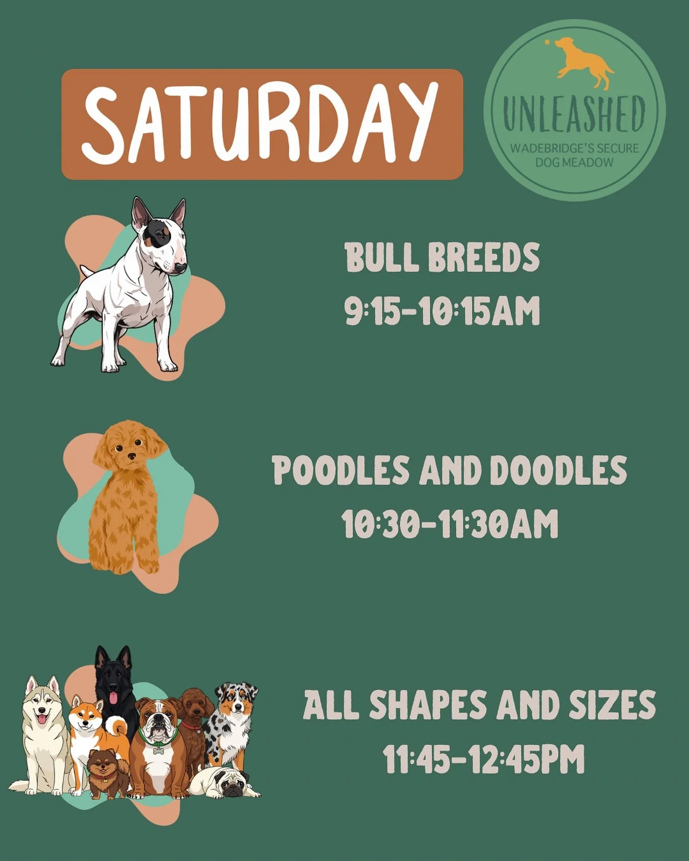We run different breed meet ups every week in addition to our weekly timetable. These breed meet ups give your pooches a chance to meet and play with dogs of their own breed whilst you can chat to other owners and make new friends! We welcome cross breeds too, for example Labradoodles at a Labrador session.